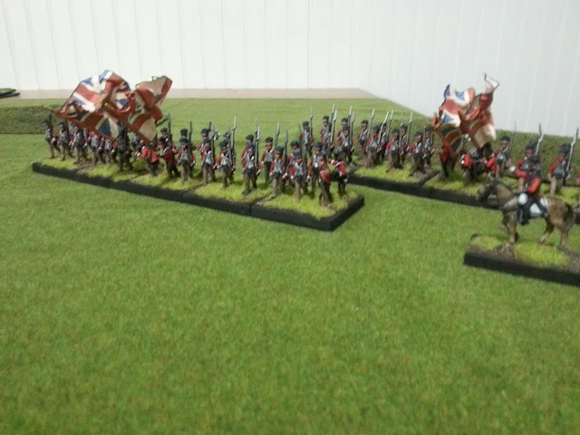 These outstanding figures are from Kings Mountain Miniatures and are simply the best highlanders for this time period, period. They really capture the feel of this hard fighting unit. All are dressed in gaitered overalls rather then kilts. Although some modern reconstruction have them wearing trewes I have yet to find a period source to confirm it. So, I painted them in tan overalls. Flags are by The Flag Dude.